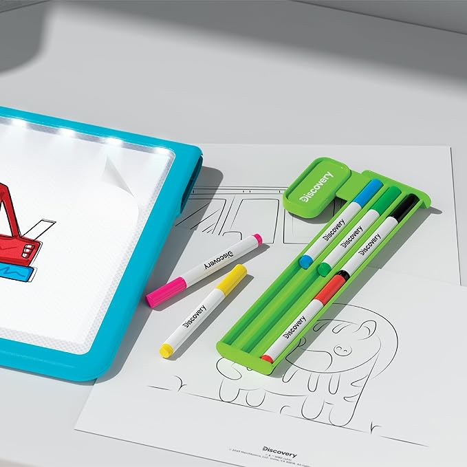 Discovery™ Glow Tracing Light-Up Art Tablet – Includes 10 Templates, 10 Blank Sheets, 6 Washable Markers| Writing Drawing Tablet for Kids| Craft Kit for Boys Girls| Doodle Board Drawing Pad Toy Gift