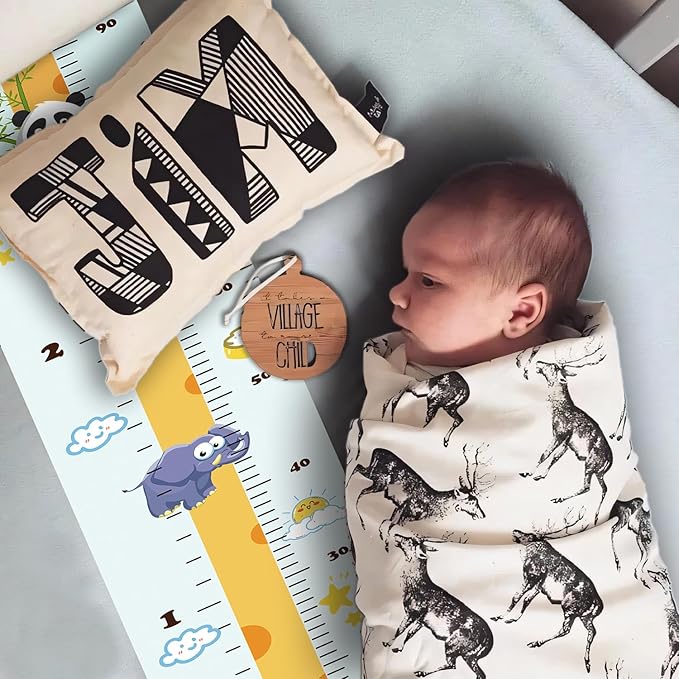 Kids Growth Chart, Wood Frame Fabric Canvas Height Measurement Ruler from Baby to Adult for Child's Room Decoration 7.9 x 79in (7.9 x 79in, Giraffe)