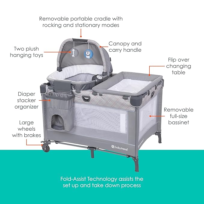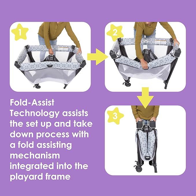 • Fold-Assist Technology assists the set up and take down process with a fold assisting mechanism integrated into the playard frame