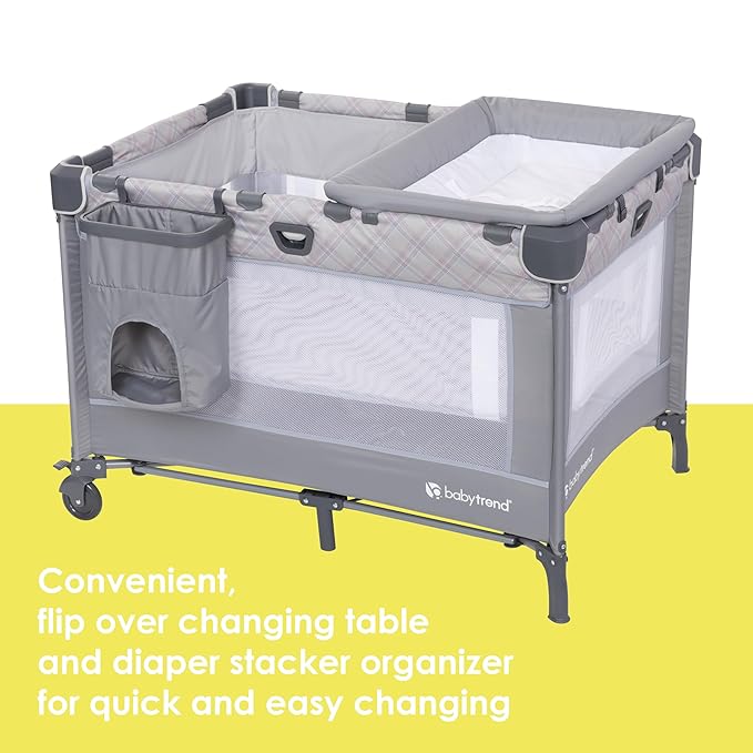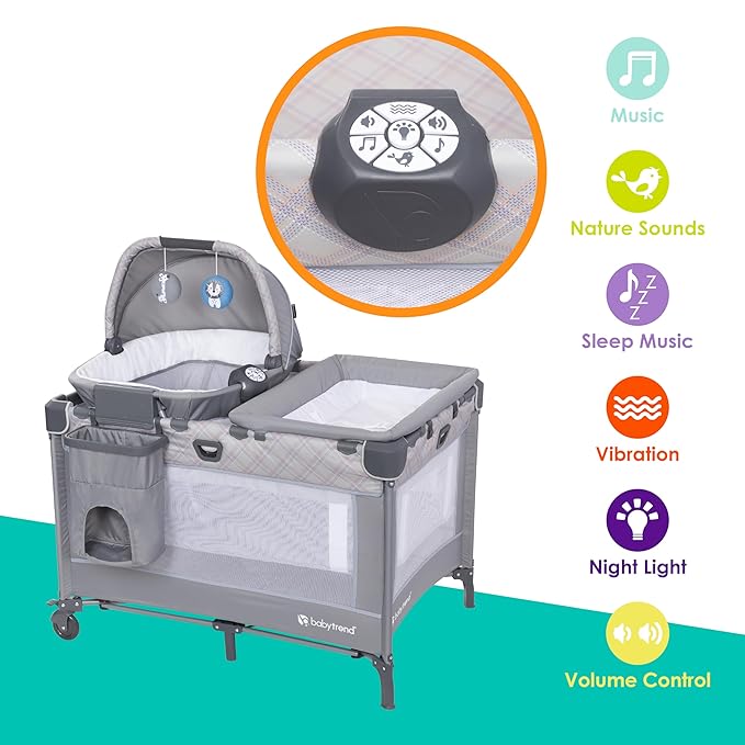 Baby Trend Lullaby Nursery Suite EZ-Fold Playard with Portable Rocking Lounger, Madrid Plaid