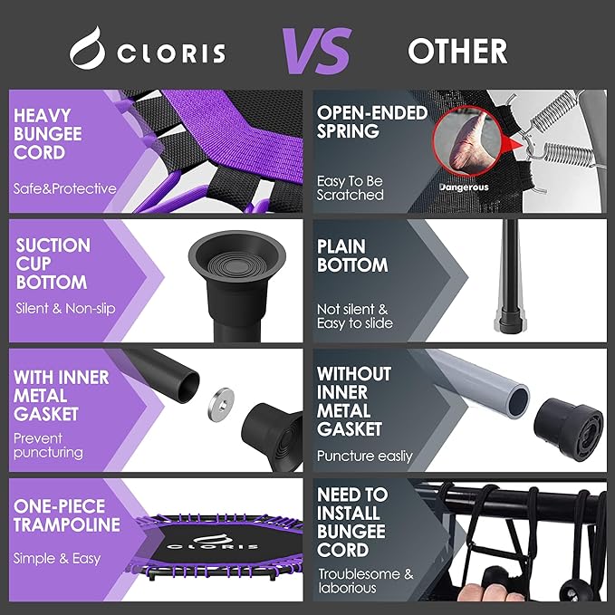 • 【EASY TO PUT TOGETHER】This elastic band trampoline requires little setup as it comes with the bands installed and adequately looped around the frame when you purchase them. To make the easy assembly easier, we also make a demo video to provide exact and step by step instructions, making sure that you get to enjoy our product sooner rather than later