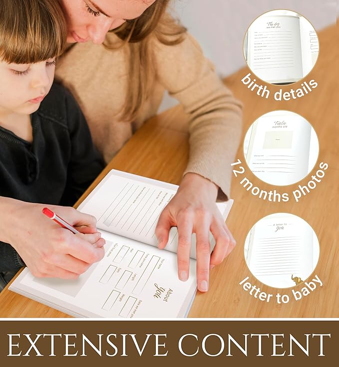 • This elegant design is not just a book; it is a cherished heirloom that tells the story of love, joy, and bond between parents and your baby. As the years pass, this precious book will become a cherished memento, evoking smiles and reminiscing about those magical moments of your baby's first year.