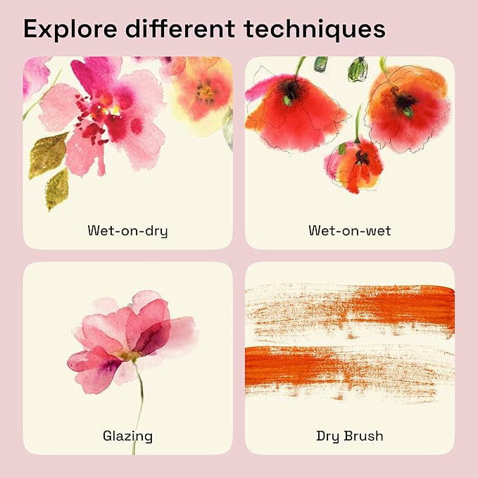 • Versatile Application Techniques: Our watercolors are designed for flexible use, allowing for smooth flat washes and easy layering. The paints do not leave hard edges when dry, enabling a range of techniques for professional results.