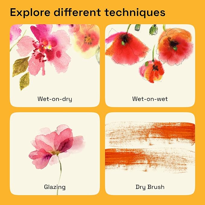 • Versatile Metallic Application Techniques: Our metallic watercolors are designed for flexible use, allowing for smooth flat washes and easy layering. The metallic paints blend seamlessly and do not leave hard edges when dry, enabling a range of professional techniques.
