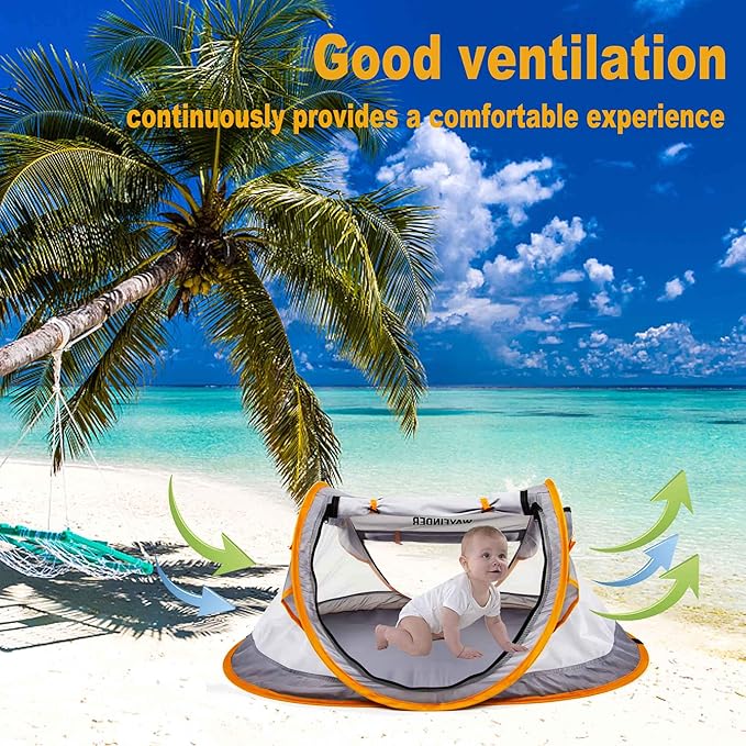 • Protected-190T polyester PU coating and water proof UV50+ baby travel tent, (SGS lab tested)great to keep your kids safe from the sun, the dense white mesh prevents any tiny mosquitoes and bugs