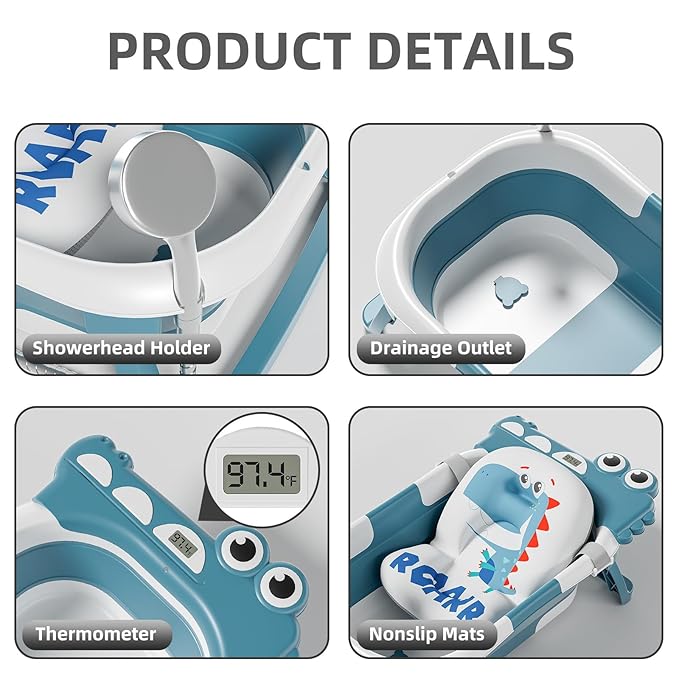 • Visible Real-time Temperature Monitoring: The travel-friendly baby bathtub is equipped with a real-time temperature sensor, offering instant reminders to prevent scalding or exposure to cold water. The wrap-around temperature lock system ensures accurate monitoring, making it a versatile choice for use in bathrooms, homes, during travel, or camping.