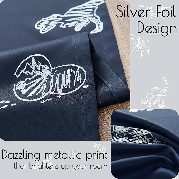 Vangao Kids Curtains Navy Blue Blackout Dinosaur Curtains for Boys Kids Nursery Girls Room Silver Dino Foil Print Thermal Insulated Drapes Grommet Top Window Treatments 63 Inches Length 2 Panels