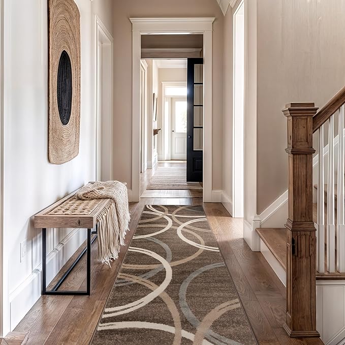 Rugshop Modern Wavy Circles Design Runner Rug 2'7" x 10' Brown
