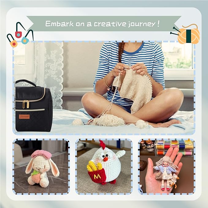 • 【Multifunctional Crochet Storage Bag】This ideal starter pack for kids comes with a large capacity bag to hold all your hooks, crochet supplies and accessories, keeping them organized and avoiding loss, this bag for crochet storage is easy to carry and perfect for storage and travel.