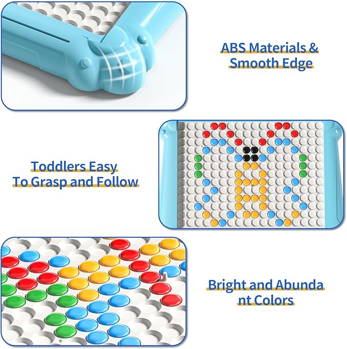 • 【Well Designed Non-toxic】Magnetic drawing board is made of kids friendly ABS plastic material. The rounded corners of the magnetic dots board are smooth to take care of little ones' small hands. All magnetic beans are sealed inside a clear acrylic panel which can effectively avoid the risk of toddlers swallowing. The magnetic pen has just the right magnetic force to pick up 1 magnetic bead, avoiding the situation where the bead cannot be moved or 2 beads are picked up at the same time.