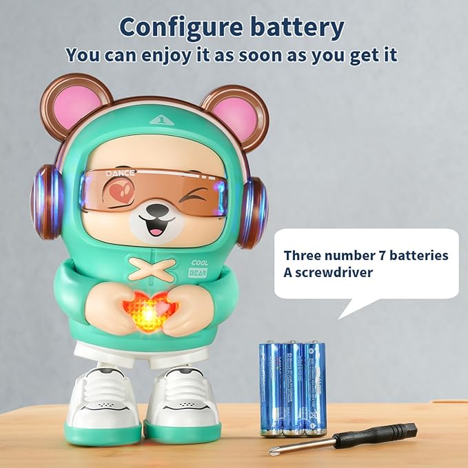 • [Features]: This cute bear can dance, swinging left and right, with soft lights, moderate volume music, and a lot of fun actions can interact with Toddlers.