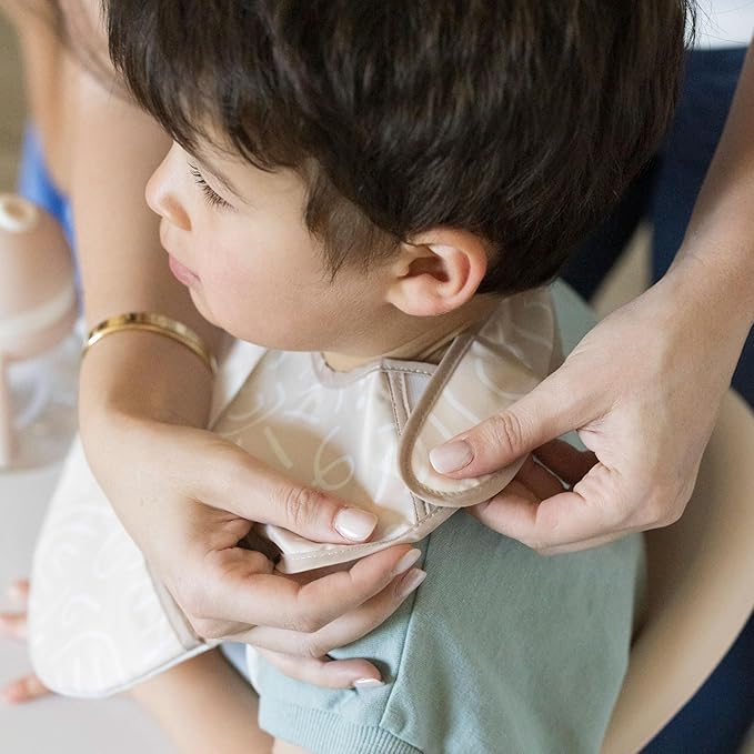 • TRAVEL MUST HAVES: Our baby feeding bib is the ultimate travel companion.Soft,lightweight and waterproof,this infant bib features a no-scratch closure that's gentle on your child.It protects clothes,floors and tables from messes.Bring your baby anywhere with confidence,knowing you've got the right toddler bib and baby smock bib for the job.