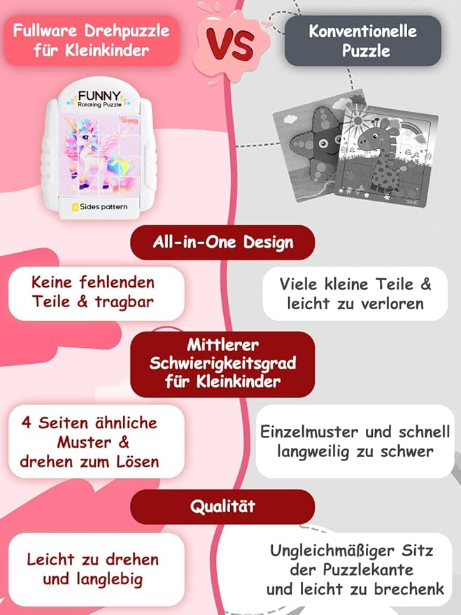 • A HANDY TOY FOR OUTINGS - Whether in the car or at a restaurant, our compact Rotating Puzzles can be carried along and keep children quiet and occupied. Moreover, there is no risk of missing pieces after playing with this all-in-one design puzzle!