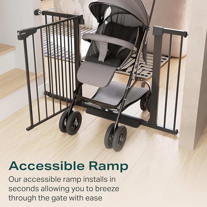 • Large & wide: With a height of 30.5 inches and an adjustable width of 29.7-46 inches, this black gate fits most doorways. Our large walk-through gate makes it easier to move around while holding your baby. A great choice for new parents