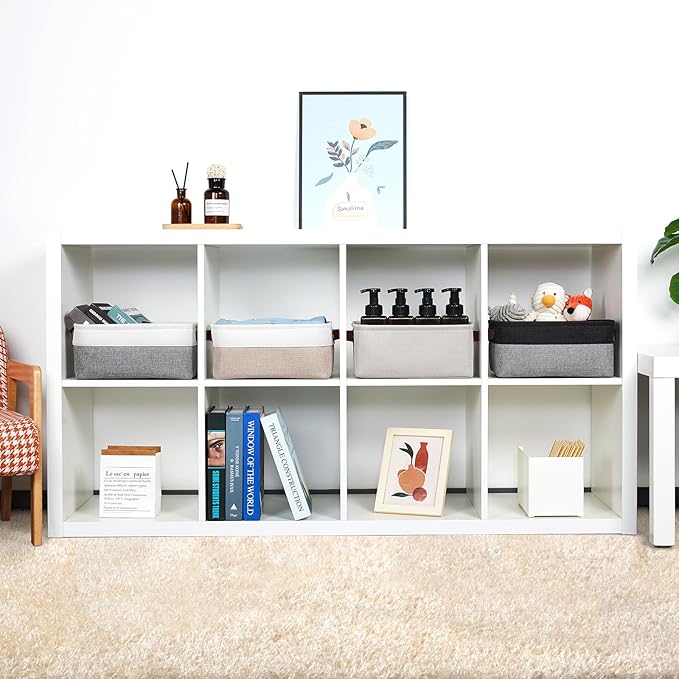 • Premium Material: These canvas storage bins are made with premium-quality fabric and thickened EVA. Soft&comfortable, sturdy&resistant, lightweight, and easy to use over time. The fabric storage baskets are more suitable for storing towels and baby clothes.