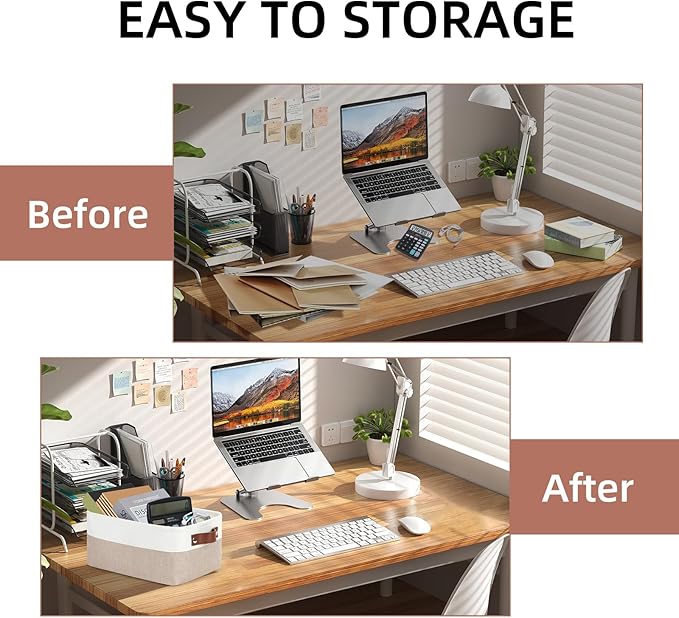 • Easy to Clean: The mini storage bins are easy to clean. You can dust the basket with a soft cloth and light soapy water when needed. It is not recommended to machine wash it as there is a metal frame support inside.