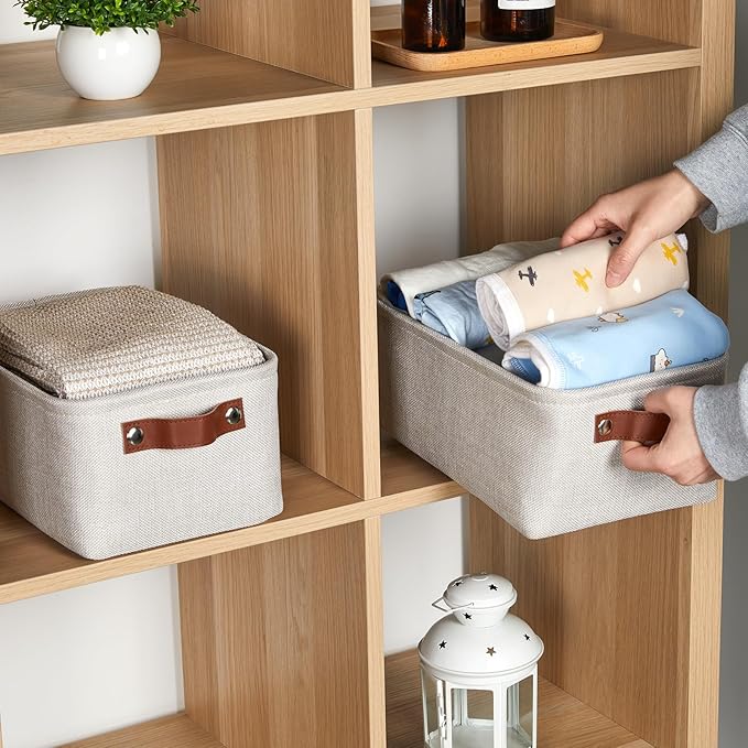 • Premium Material: These storage baskets are made with premium-quality fabric and thickened EVA. Soft&comfortable, sturdy&resistant, lightweight, and easy to use over time. The small collapsible storage bins are more suitable for storing towels and baby clothes.