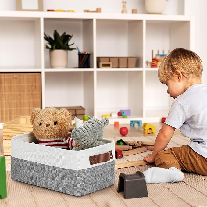 • Premium Material: These storage bins are made with premium-quality fabric and thickened EVA. Soft&comfortable, sturdy&resistant, lightweight, and easy to use over time. The fabric bins are more suitable for storing towels and baby clothes.