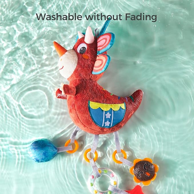 • 【Stimulate Visual】Lovely plush dinosaur rattle with individual animal characters,high contrast colors,Lots of different textures to give baby maximum sensory experience,every car seat hanging toys can attract baby's attention easily and stimulate their visual development and develop baby's hand-eyes coordination. Encourages reaching and grasping.