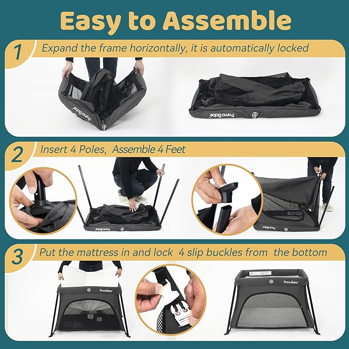 • BREATHABLE MESH: The travel crib is made with airflow mesh for breathing and allowing you to see your baby, and baby to look out