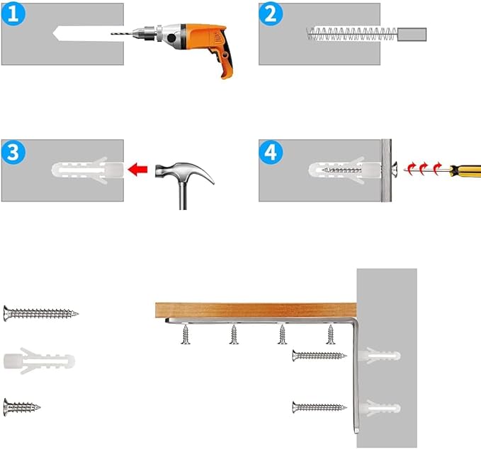 • Furniture Wall Anchor Wide Application: The small solid and strong L corner braces can be used in a variety of furniture and hardware accessories, perfect for fastening bookshelf anchors for wall, table, dresser wall anchor, furniture, dresser, shelf, bookcase anchors, etc