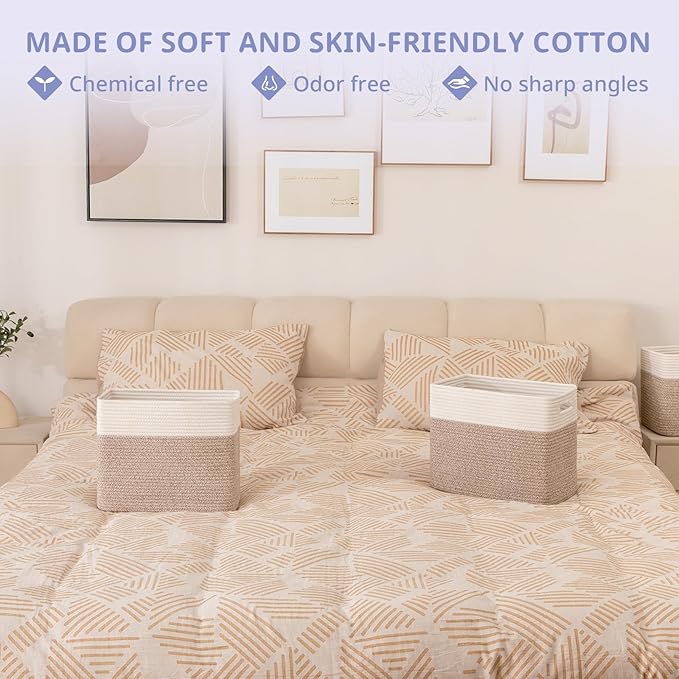 • 100% Cotton Rope Storage Baskets:OIAHOMY storage bins are made of high-quality natural cotton, chemical free and safe for kids and pets. It will not scratch your furniture and floor and more firm than plastic basket