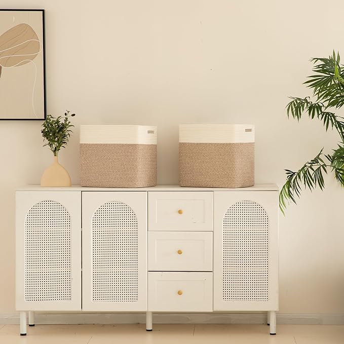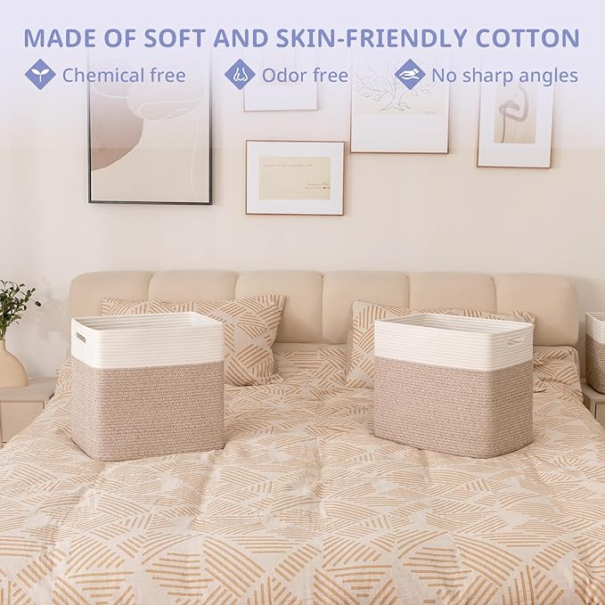 • 100% Cotton Rope Storage Baskets:OIAHOMY storage bins are made of high-quality natural cotton, chemical free and safe for kids and pets. It will not scratch your furniture and floor and more firm than plastic basket