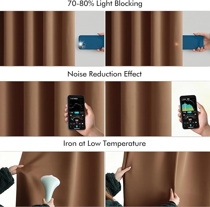 • LIGHT BLOCKING: Featuring triple weave stitching, these curtains can block 70%-80% of light and UV rays (dark colors work better). They can protect your furniture from fading and provide complete privacy and comfort for your nap or TV time.