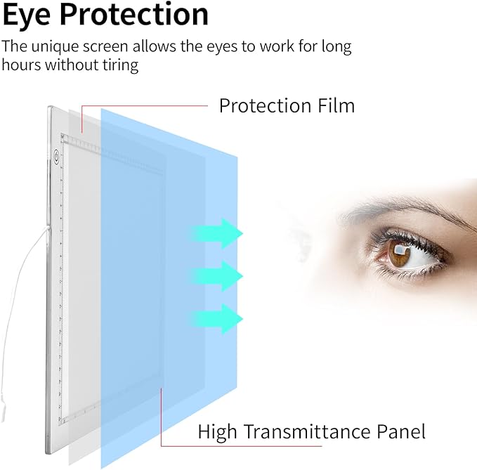 • 【 Wide Application 】This Super Bight light box tracer ideal for stenciling, art diamond painting, 2D animation, calligraphy, embossing, scrapbooking, tattoo transferring, sketching & drawing, streaming, sewing projects, stained glass, quilting X-ray viewing etc. Providing you a best gift for Christmas, birthdays or other holidays. Please feel free to contact us if you have an question, replacement is available if there is any quality issue.