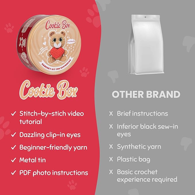 • 💖 Our Promise to You: The entire Cookie Box team is committed to making crochet truly beginner-friendly, frustration-free, and rewarding. Every kit is designed for the best learning experience, combining high-quality materials, clear guidance, and real support. Thank you for being part of the Cookie Box crochet community!