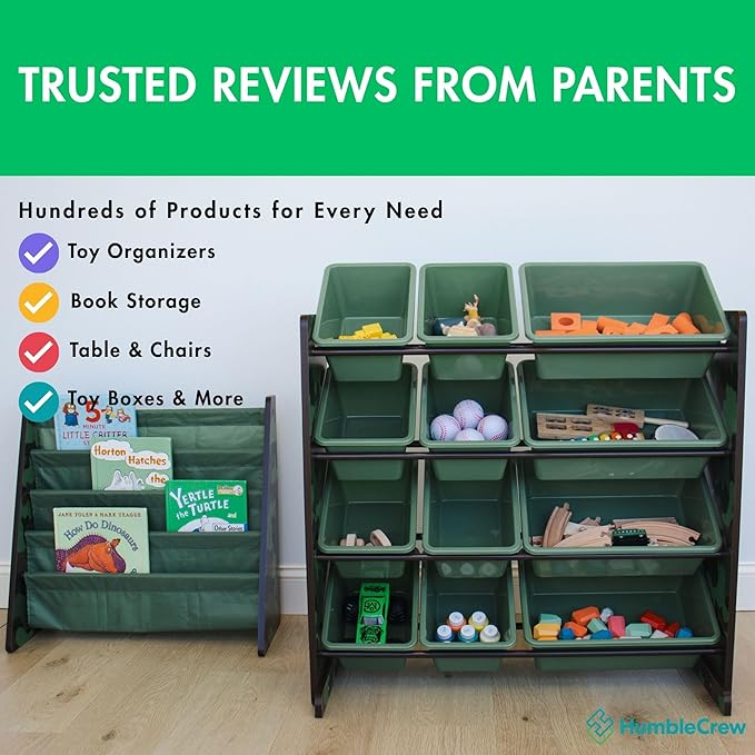 • Organize & Declutter Easily – This space-saving toy organizer includes 12 plastic bins (8 standard, 4 large) that help sort and store toys, books, and games, making clean-up quick and simple.