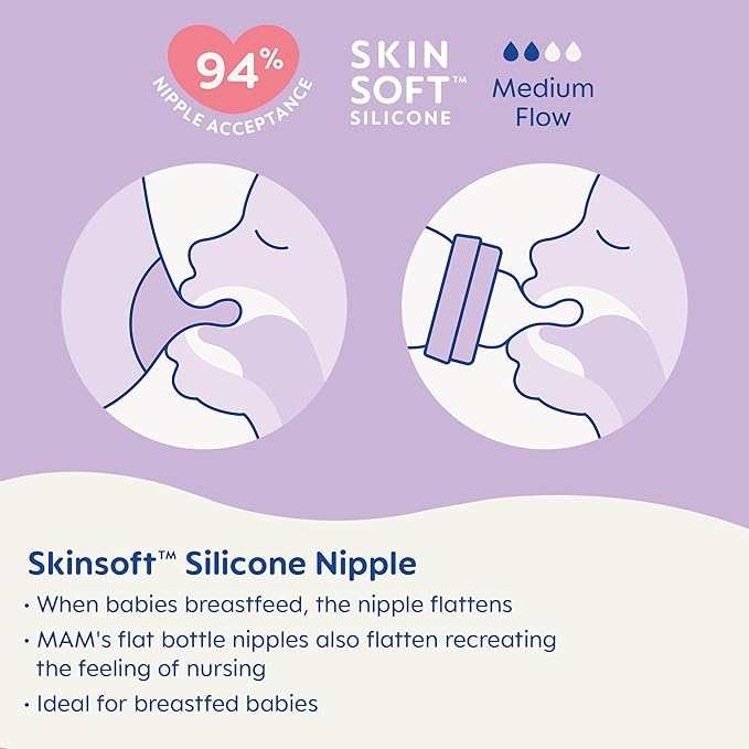 • The Anti-slip texture helps the nipple remain securely in your infant's mouth, ensuring a steady feed. MAM baby bottles are 100% free from BPS & BPA, promoting a safe, non-toxic feeding experience.