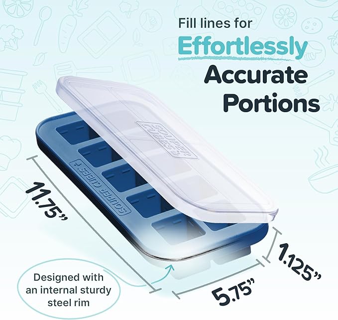 • EASY TO PORTION: This silicone 1 oz. freezing tray comes with convenient fill lines at 1 Tbsp, 2 Tbsp, 15 mL, 30 mL, and 1 oz. Each tray measures 11.75" L x 5.75" W x 1.25" H.