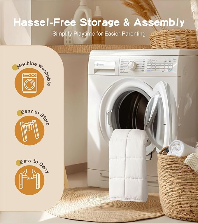 • COZY & SKIN-FRIENDLY MAT: Treat your little one to ultimate comfort with our soft, baby-safe play mat, measuring 35.6x17.1 inches. Crafted with care, the baby mat is machine-washable with quilted design for extra durability. The non-slip surface ensures safety for your baby's snug playtime, while the integrated mirror and teether toy encourage self-discovery and soothe your baby