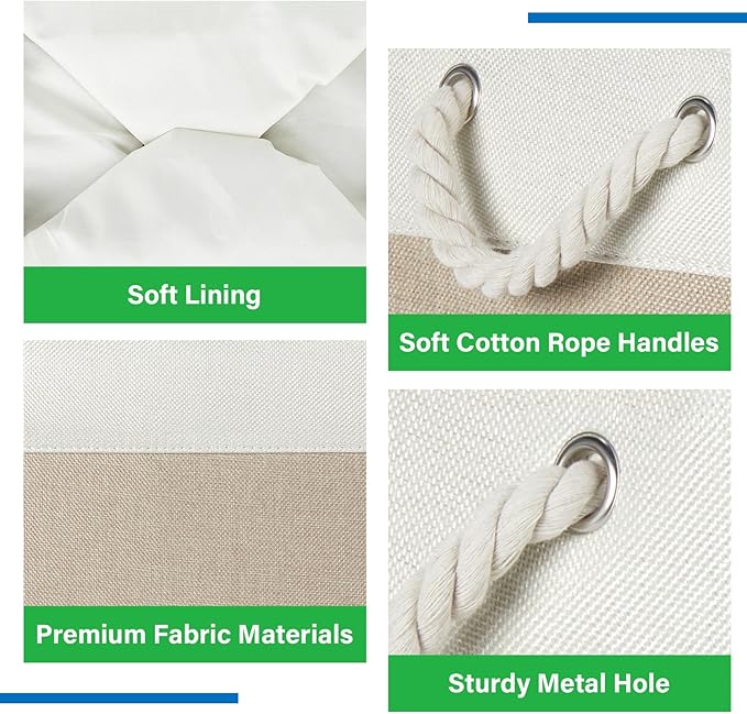 • Cotton Rope Handles & Premium Fabric: Soft handle will give you a very comfortable grip feeling, will not feel strangled hands, more easier to use the linen basket. The canvas storage bins equipped with soft and sturdy handles for moving conveniently. Sturdy soft handles on both sides are convenient to retrieve from shelves. These closet storage baskets are made of durable fabric which is strong and lightweight