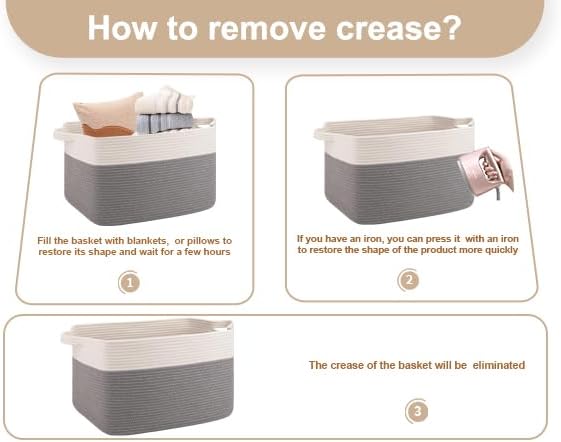 • Washable Woven Storage Basket: This rope baskets for storage can be washed by hand or machine with gentle detergent. If machine washed, please put them into a laundry bag. NOTE: These large basket for blankets are folded when shipping, but it will turn back to its elegant shape quickly if you fill it with some towels or clothing, and iron is great idea to remove the creases
