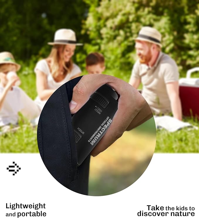 • 【pocket size 】Our mini microscope has a size of 2.5" x 1.4" x 4.5" and weights in only at 0.16 lb. Its compact size makes it easy to travel with, to be taken on a field trip, and be used at school for science project.