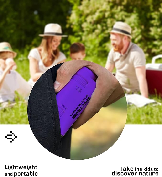 • 【pocket size 】Our mini microscope has a size of 2.5" x 1.4" x 4.5" and weights in only at 0.16 lb. Its compact size makes it easy to travel with, to be taken on a field trip, and be used at school for science project.