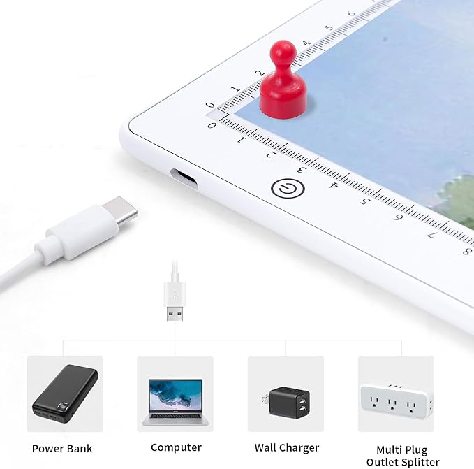 • 【Type-C Interface】 Powered by Type-C USB,this tracing light board comes with a convenient cable for easy connection to a laptop, power bank, or USB adapter. Please note that it does not have a built-in battery and requires power connection to Use.