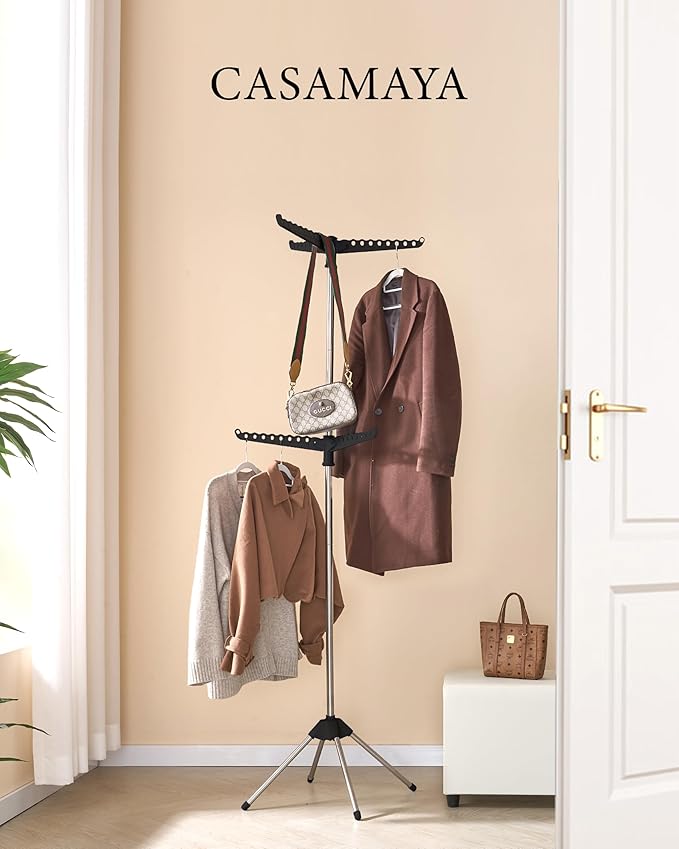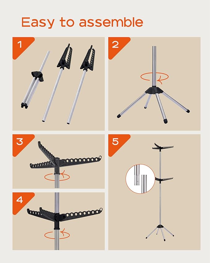 • [Strong and Durable] This clothes drying rack is made of thick stainless steel tubing, rust-proof and sturdy, four support feet design provides the best stability, overall weight capacity 66 pounds