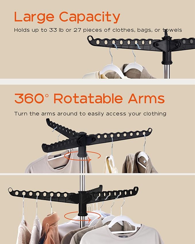 • [360 Rotating Clothes Rack] Equipped with a 360-degree swivel design, this laundry drying rack provides you with the convenience of hanging and accessing your clothes.