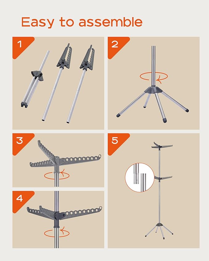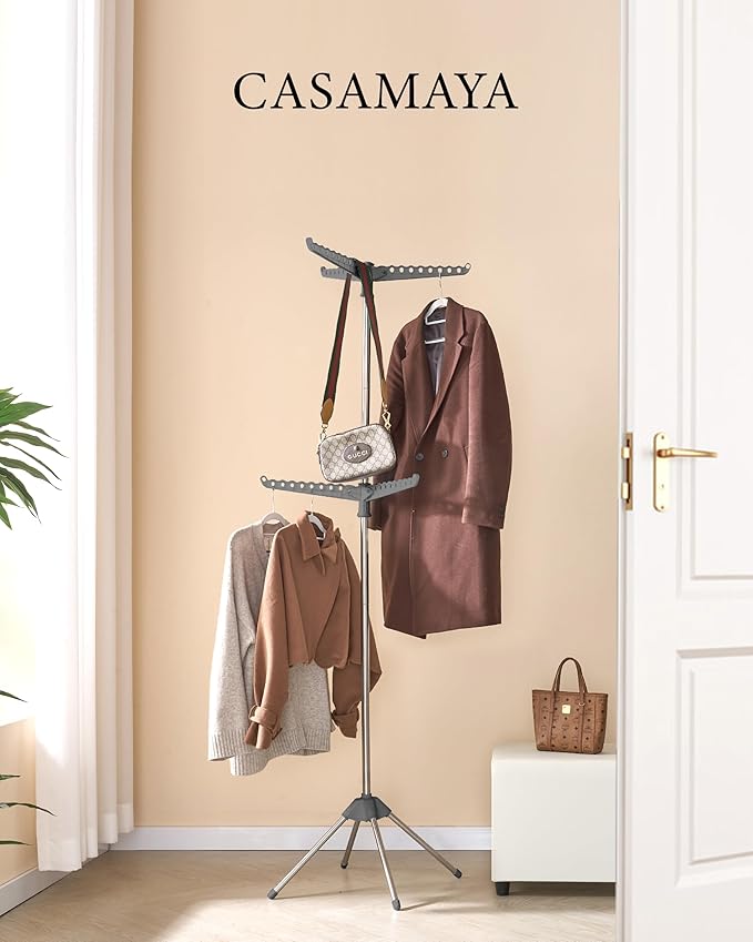 • [Strong and Durable] This clothes drying rack is made of thick stainless steel tubing, rust-proof and sturdy, four support feet design provides the best stability, overall weight capacity 66 pounds