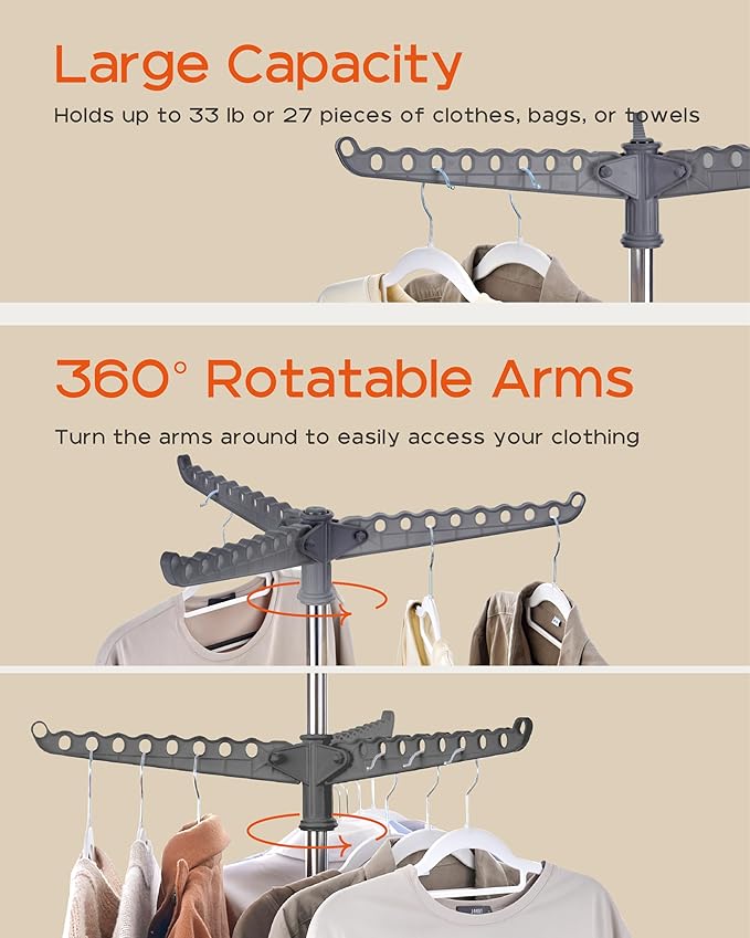 • [360 Rotating Clothes Rack] Equipped with a 360-degree swivel design, this laundry drying rack provides you with the convenience of hanging and accessing your clothes.
