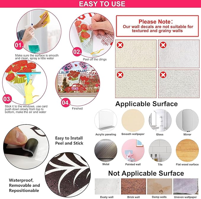 • 🐻【Easy to use】This decal is convenient to use.Just peel them off carefully and stick them on the smooth,clean,dry and dust-free surfaces with your hands.