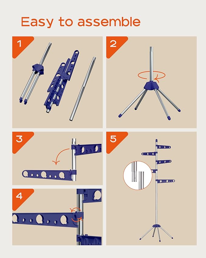 • [Easy to assemble and carry] This drying rack can be installed in just four steps and can be completed within three minutes. The easy to disassemble and assemble design makes it possible for you to carry it with you when you need to dry your clothes on a camping trip.