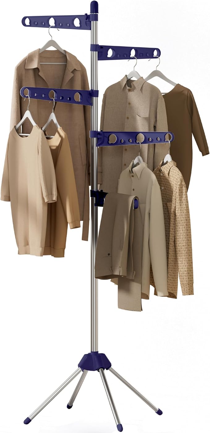 • [Height-adjustable and Rotatable Clothes Rack] The drying rack has 5 hanging rods, each of which is height-adjustable, so you can adjust it freely according to the length of your clothes. Equipped with a 360-degree swivel design, this laundry drying rack provides you with the convenience of hanging and accessing your clothes.