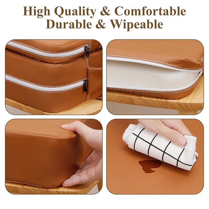 • 【Easy to Clean】Toddler booster seat for kitchen chair is made of high-quality waterproof PU synthetic leather, which is easy to clean and can be wiped clean with a damp towel. The toddler booster seat for dining table features a zipper design for easy removal and thorough cleaning.