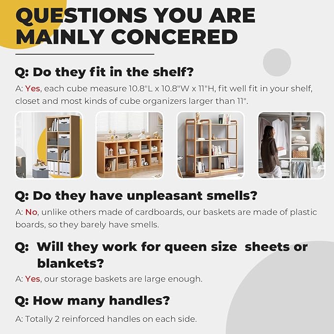 • ใ€๐Ÿฒ ๐™‹๐˜ผ๐˜พ๐™† ๐™Š๐™‘๐™€๐™ ๐Ÿฏ๐Ÿฌ+ ๐™๐™Ž๐™€๐™Žใ€‘ With these 6 pcs fabric storage cubes, you could use as storage bins for clothing, blankets, bed sheets, crafts supplies/ toy storage organizer/ cube storage drawers. Versatile use for bedroom, living room, playroom, nursery, classroom, office, laundry room, bathroom organization and storage/ garage, mudroom, hallway, entryway storage organizers. Also decorative as home decor.