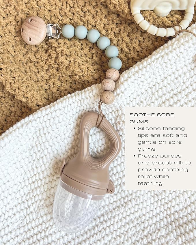 • ✔️ SOOTHE SORE GUMS: The silicone feeding tips are soft & flexible, yet durable so they’re gentle on sore gums. Freeze cubes of purees and breastmilk and place inside the feeding tips to provide soothing relief for babies while they’re teething. The set includes 2 extra feeding tips.