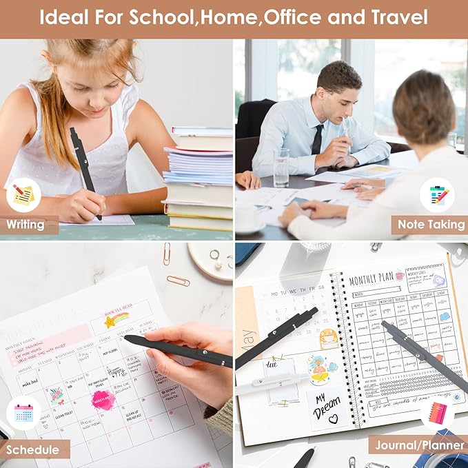 • 【Retractable Design】Click to open/close, and the tip will retract and come out automatically, which will not stain your book or pocket. Also, the satisfying and sensitive click response provides you with a great way to relieve stress and spark inspiration.